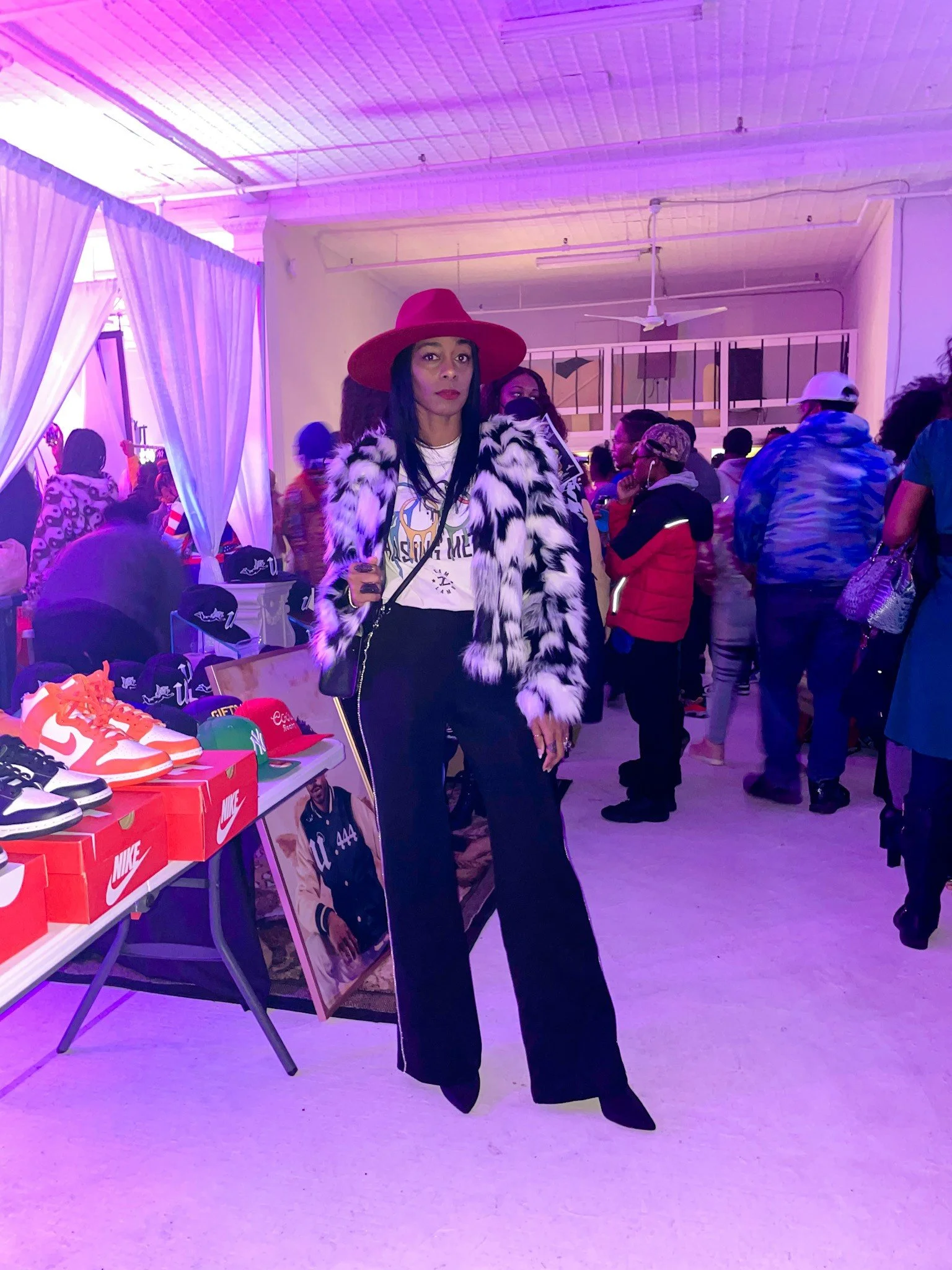 Style Tip: I like to dress for my mood or the event. So I decided to wear my Team LAMB t- shirt. It was chilly so I paired the t-shirt with a black & white fur jacket, black flare pants, black boots, and topped off with a wine colored hat.